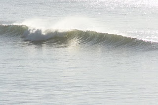In hopes of connecting with faster waves I moved way inside and north of the Groin wall to catch waves that worked into the shore break. Finally I had some success. I caught five waves that had peeled from the Channel and reformed in front of the Groin Pole. I would catch the peak at the Groin Pole, jump up quickly, turn left into a small shore break wall, step to the front of the board and cruise for a second or two before the wave collapse on the sand. Fast but short curls.